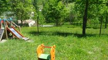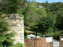 Camping ombragé, ancien parc du château avec arbres centenaires. Calme. En bordure de rivière, formant des gorges.